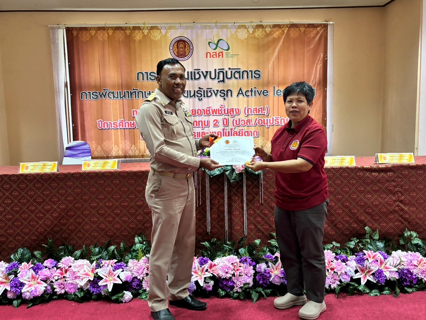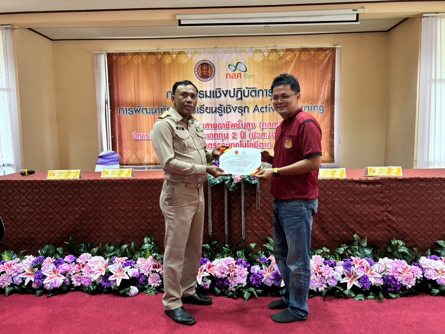 วิทยาลัยเกษตรและเทคโนโลยีตาก อบรมเชิงปฏิบัติการ การพัฒนาทักษะการเรียนรู้เชิงรุก Active Learning ประจำปีการศึกษา 2566 ระหว่างวันที่ 25-26 มีนาคม 2567 ณ อาคารศูนย์วิทยบริการ วิทยาลัยเกษตรและเทคโนโลยีตาก ประธานเปิดพิธีการอบรมโดยนายประะเวศ วรางกูร ผู้อำนวยการสถาบันการอาชีวศึกษาเกษตรภาคเหนือ กล่าวรายงานโดยยนางสาวชลธิชา วณิชศิริ รองผู้อำนวยการวิทยาลัยเกษตรและเทคโนโลยีตาก วิทยากรผู้ให้ความรู้ ดร.ชมนาด พรมมิจิตร ศน.วิรหาร ท้าวคำมา ศน.สุกฤษฎิ์พล โชติอรรฐพล ศน.จารุณี มณีขัติย์ และประธานในพิธีปิดพร้อมมอบเกียรติบัตรให้แก่คณะครูผู้เข้าอบรม นายณัฐพงศ์ สำแดง ผู้อำนวยการวิทยาลัยเกษตรและเทคโนโลยีตาก